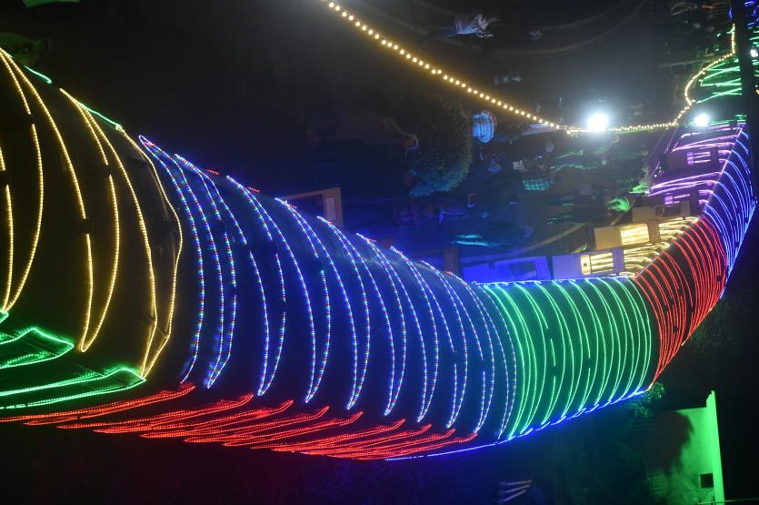 Fifteen minutes later we reached Churston Station, where the show truly began. With anticipation building, we were propelled through the 450-metre Greenway Tunnel and into the enchanted forest, transformed by a multitude of lights, brand-new feature displays, and some beloved favourites.