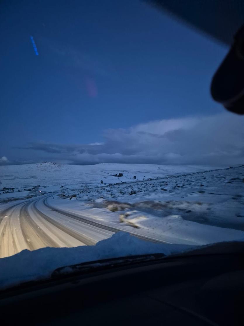 High-ground roads leading into and around Princetown were reported icy in places, prompting warnings for motorists to take care.