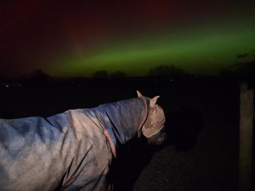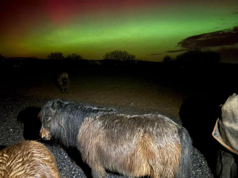 A rare display of the Northern Lights was seen above rescued horses and ponies at The Mare and Foal Sanctuary in Devon earlier this week.