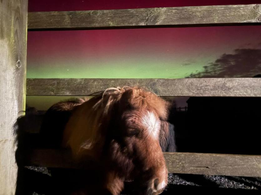 Among the ponies present was miniature Shetland pony Sir Didymus, who was experiencing the Northern Lights for the first time.