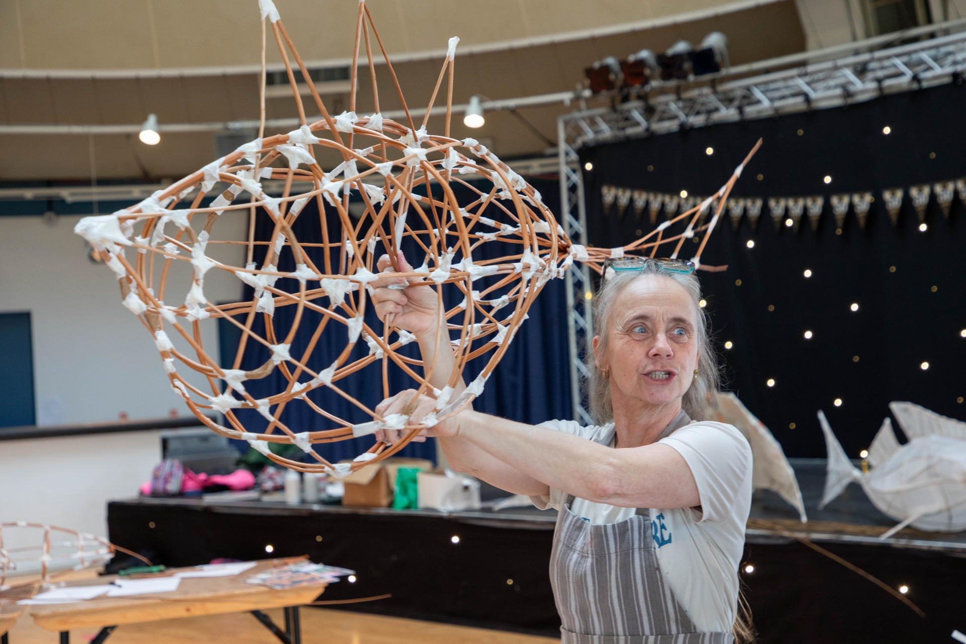 Above: Carol Turner helping out with at the under the sea-themed withy lantern workshops at the Landmark. Credit: Tim Lamerton