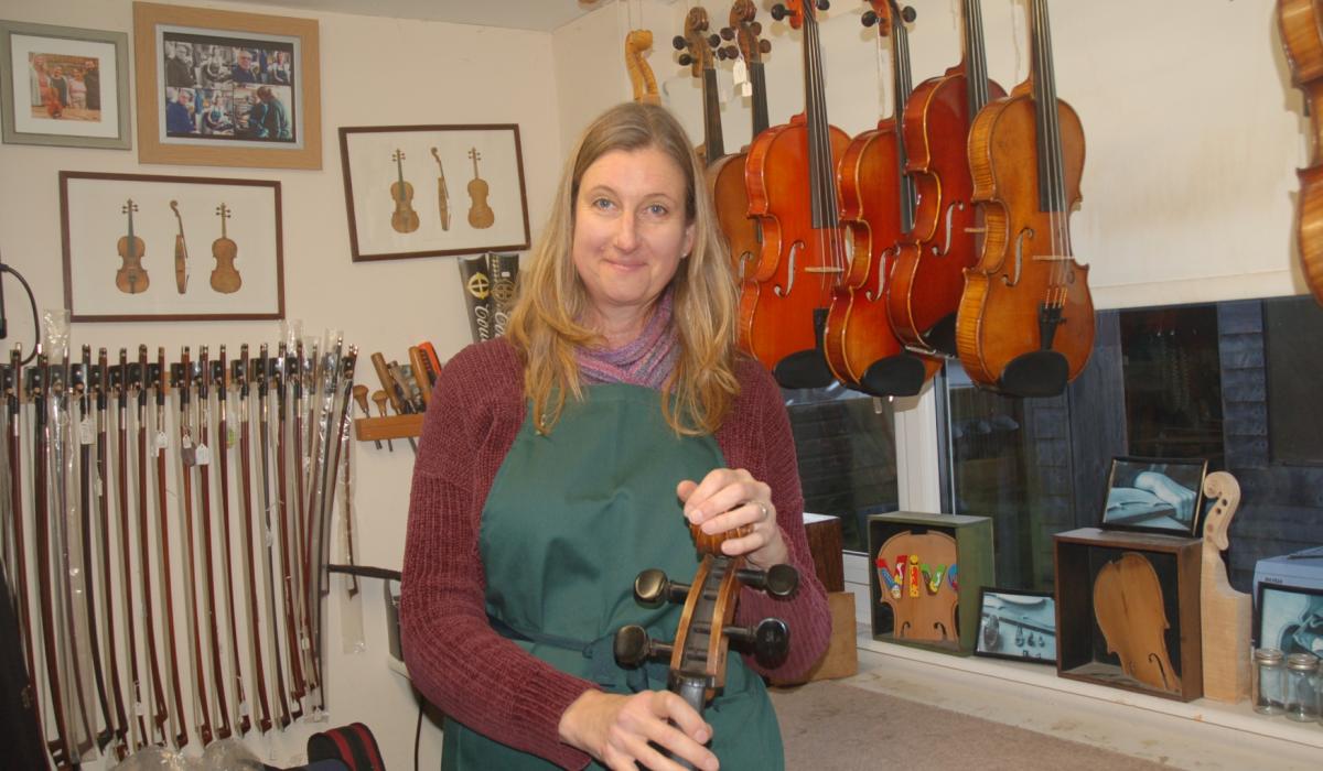 Luthier Becky Houghton in her North Devon workshop. Credit: Richard Maynard