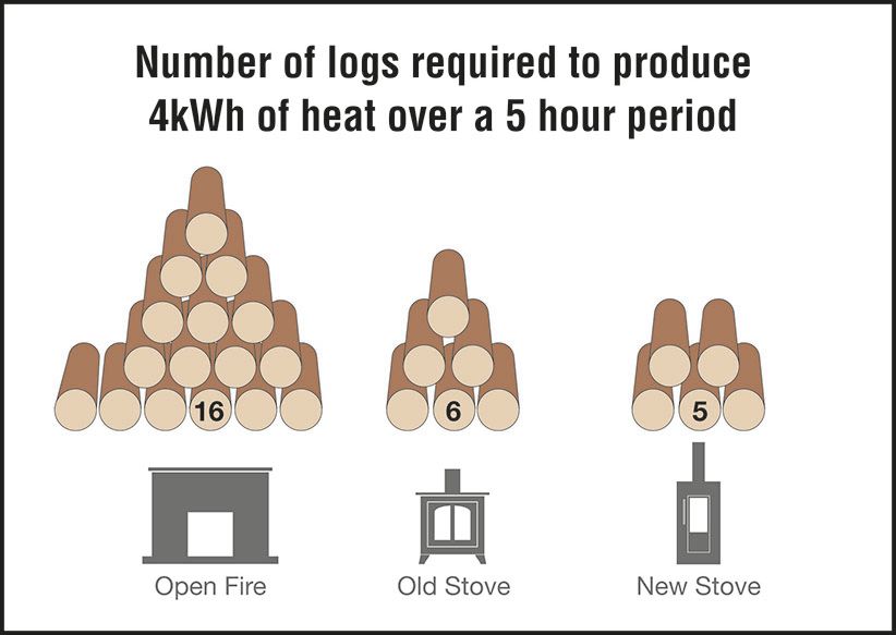 ‘Without doubt, using a wood-burning stove compared to an open fire makes a huge difference. The majority of modern wood-burners incorporate efficient, clean-burn technology which, if used with properly seasoned logs, reduces particulate pollution significantly – up to 80% for example, compared to a stove manufactured 10 years ago. Furthermore, the stove industry has developed ‘EcoDesign Ready’ specifications for wood burning stoves ahead of planned legislation due for implementation in 2022.
