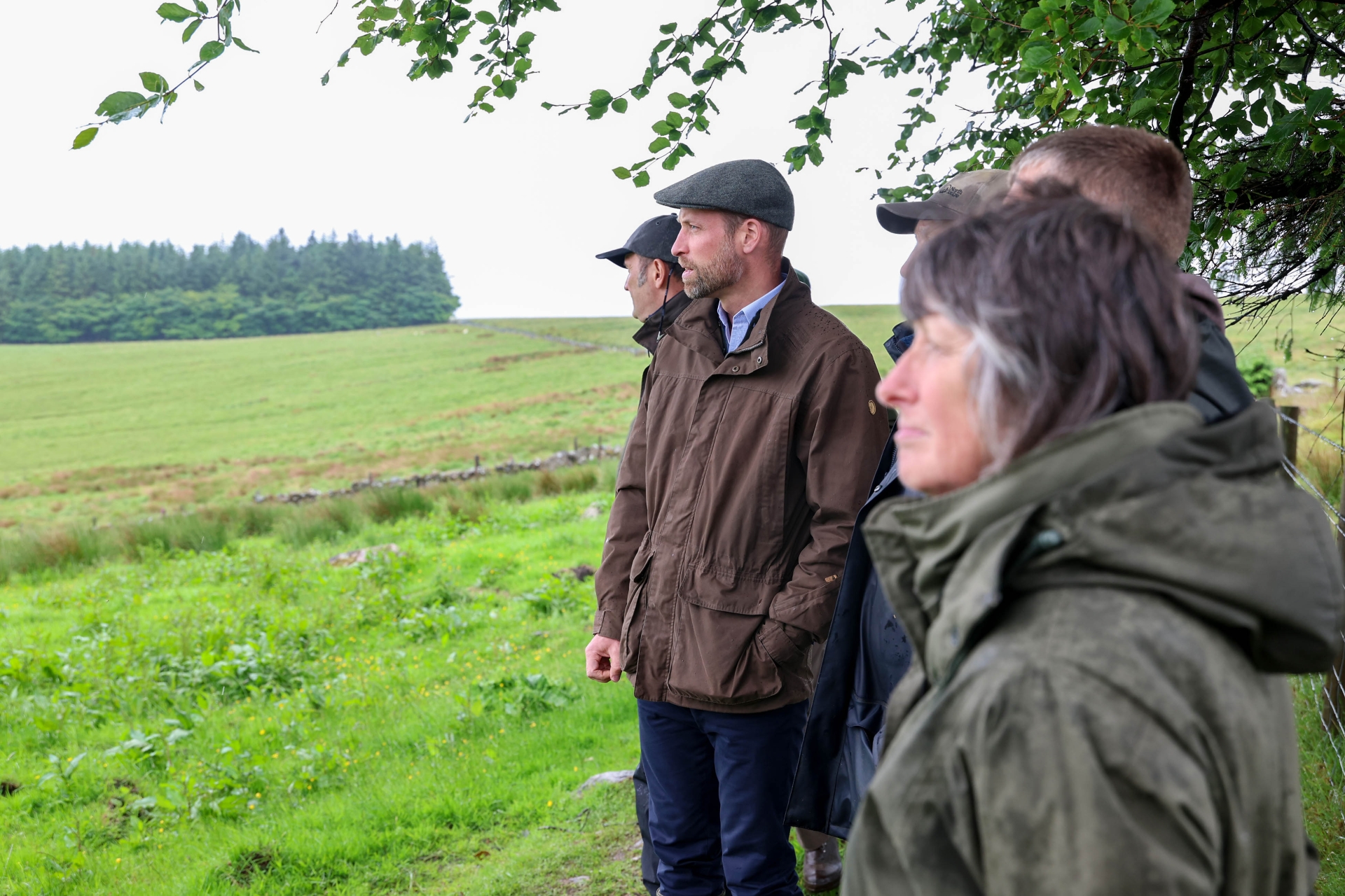 ABOVE: The Prince of Wales views Dartmoor’s upland habitats central to the climate resilience plans. Picture by Andrew Parsons / Kensington Palace