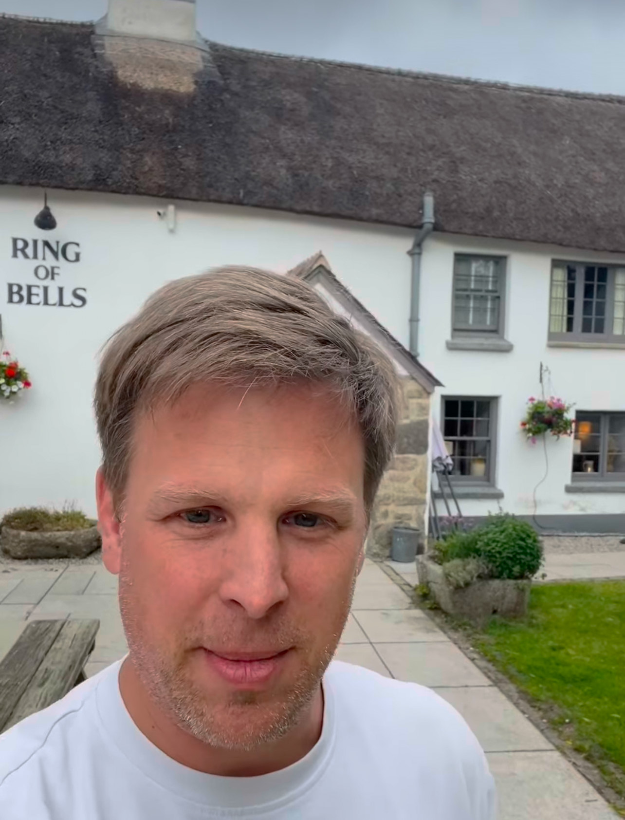 ABOVE: Landlord Richard Edlmann outside the Ring of Bells, North Bovey (Credit: Ring of Bells)