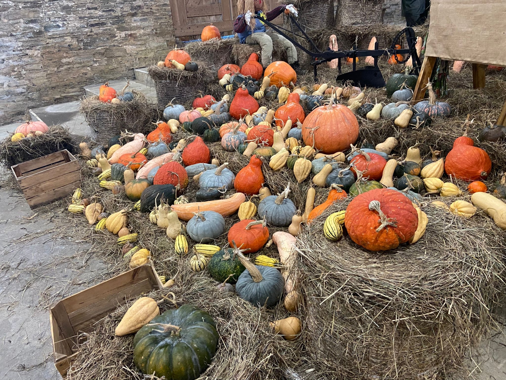 The display includes hay bales from the estate and a hand-crafted “Scare Horse” made by volunteers.