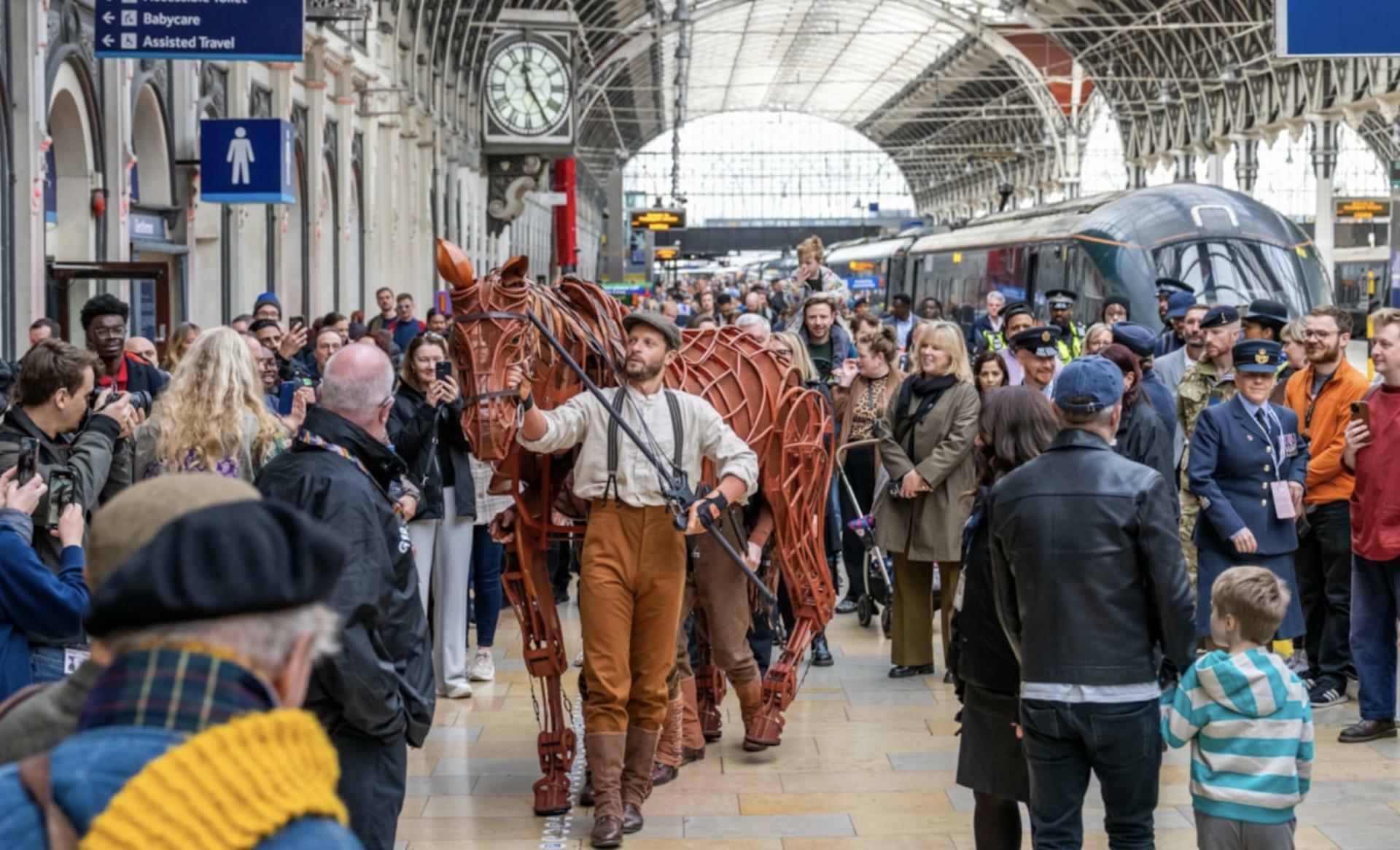 The life-sized puppet horse, created by the Handspring Puppet Company for the National Theatre’s production, made a rare appearance at London Paddington Station as part of the naming ceremony.