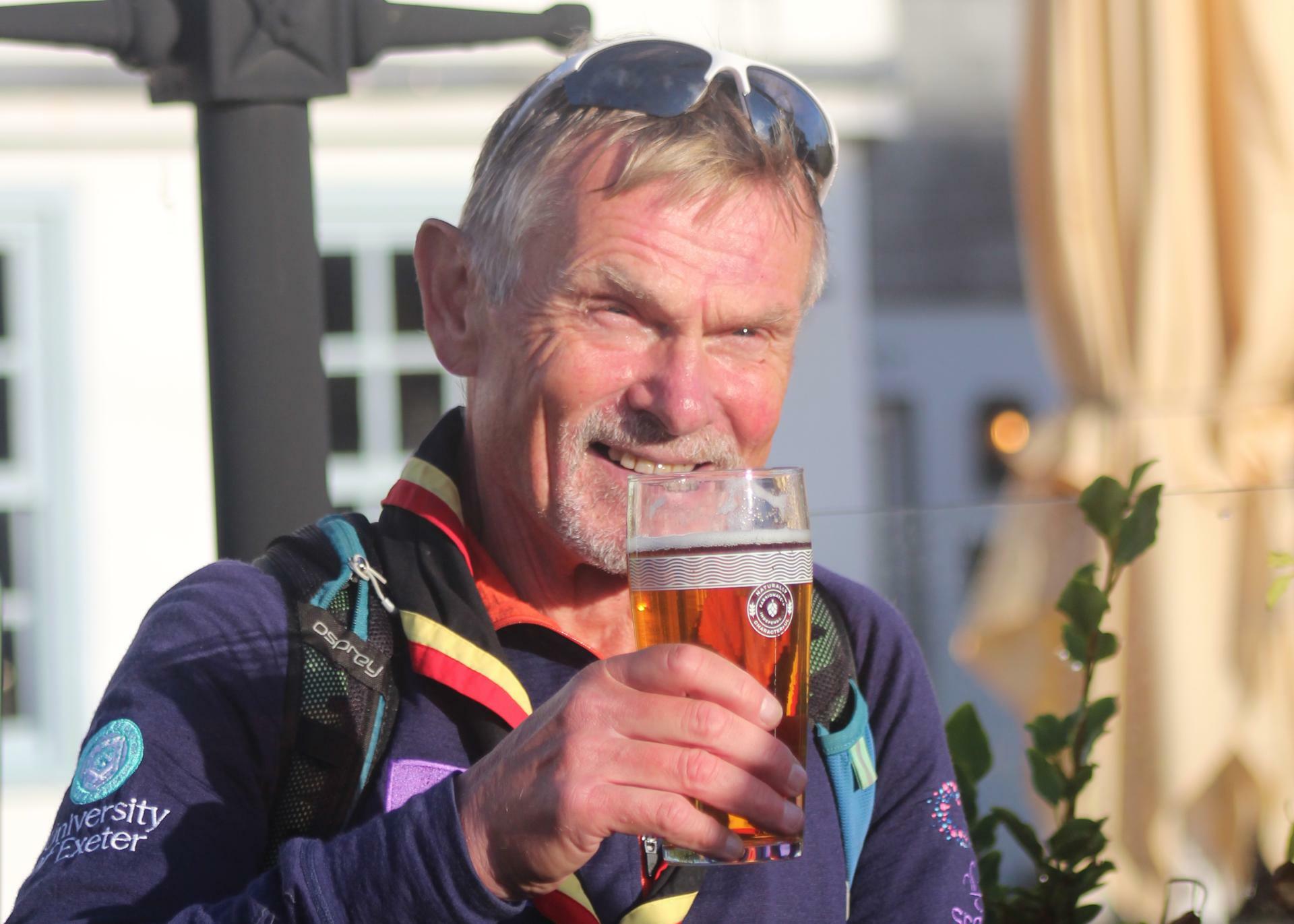 ABOVE: Steve enjoying a well-earned pint after his epic challenge (Credit: University of Exeter)