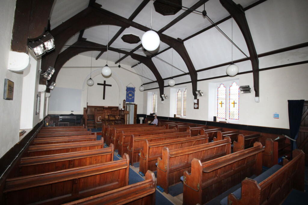 It also comprises a secondary entrance porch, kitchen, cloakroom, storage rooms, and a church hall measuring approximately 9.58m x 6.03m.