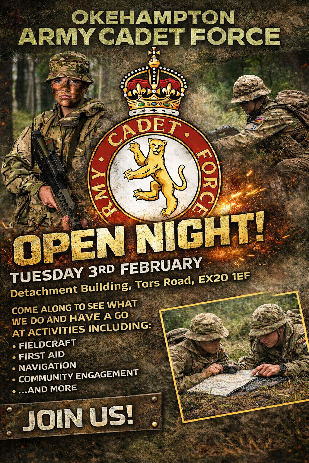 The open night will take place next week at the cadets’ detachment building on Tors Road, Okehampton, on Tuesday 3 February.