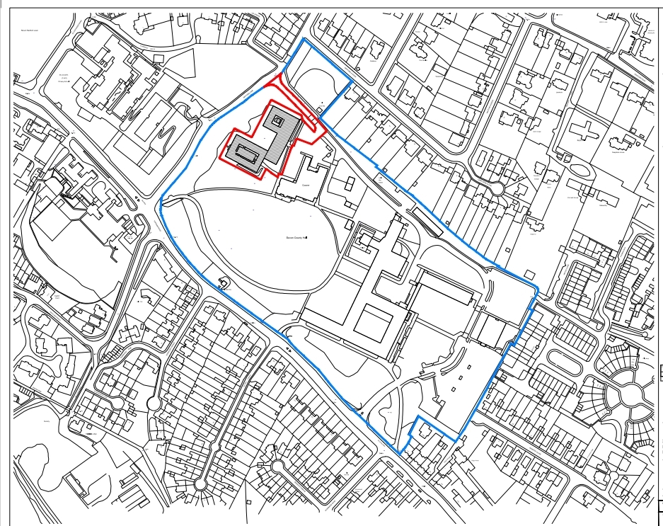 ABOVE: The portion of land on the County Hall site, outlined in red, that will be sold off and potentially developed for homes (Image courtesy: Devon County Council)