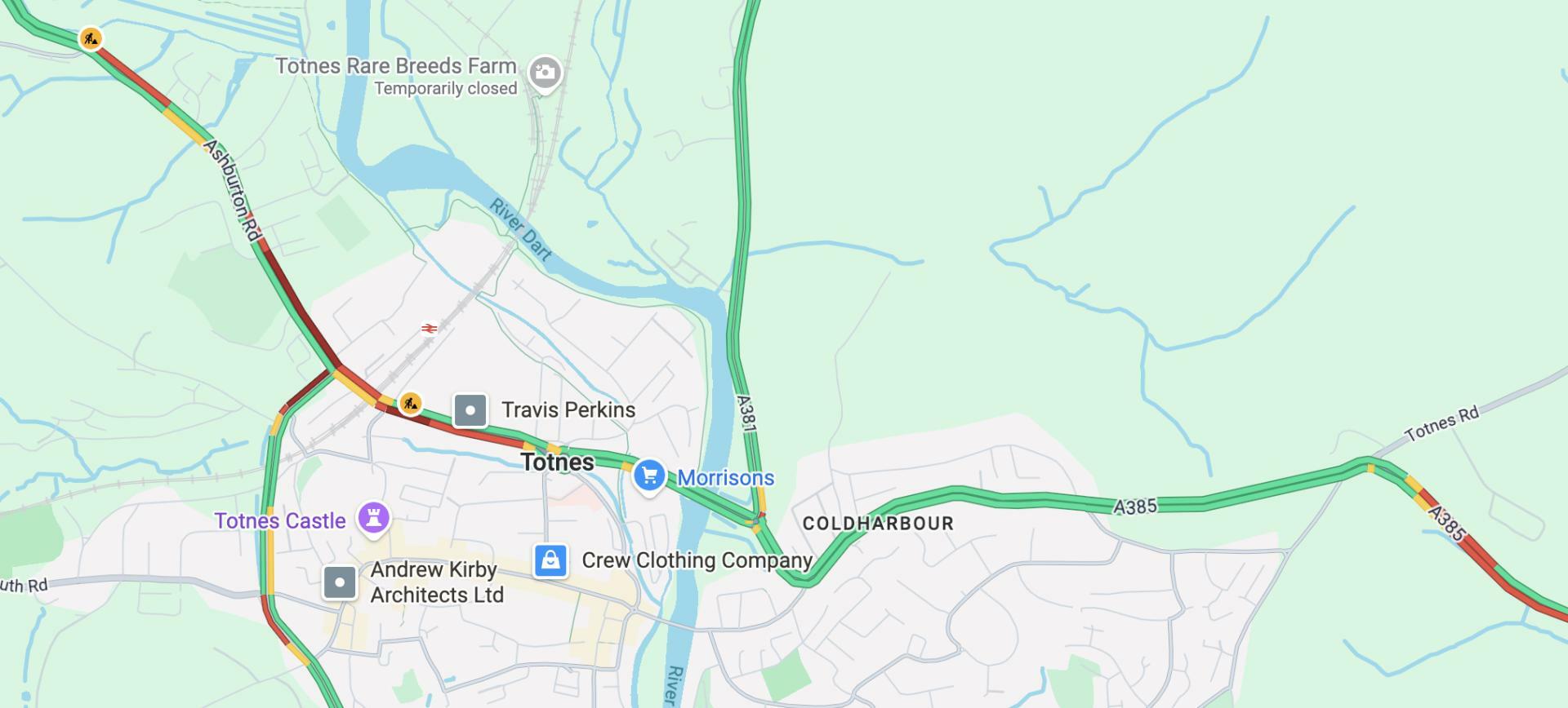 ABOVE: Current traffic information for Totnes is available on Google Maps